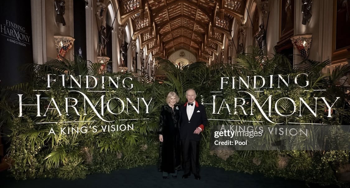 Софи Хантер, Бенедикт Камбербэтч, сэр Кеннет Брана и Федерико Маркетти принимаемые в круг близких Фирме артистов, отправились накануне вечером в Виндзорский замок, чтобы сопровождать короля Карла Третьего, в миру Чарльза, на премьере фильма «В поисках гармонии: видение короля».