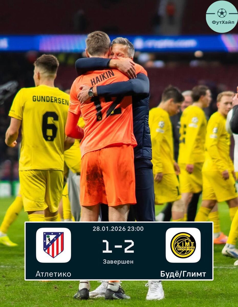 Смотрите - начали ЛЧ с 3х очков в 6 матчах, а потом хлопнули и Сити (очень уверенно), и вчера на выезде был повержен Атлетико 🔥 Причем так просто им давались голы, Симеоне должен был после матча вынести свою оборону вперед ногами. Второй гол обязательно включите и посмотрите - это смех))) #гонка_за_ушастым В 1/16 Буде/Глимт ждет очередной ТОП клуб - либо Интер, либо Реал, там в успех уже верится сомнительно, но эти парни приковывают к себе ❤️ 🔥 - выйдут в 1/8 🤷♂️ - проиграют в 1/16 ➡️ Подписаться на ФутХайп