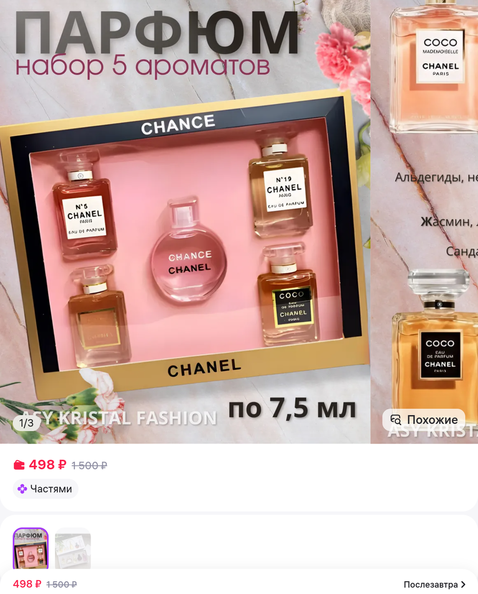 Недавно на Wildberries заказала парфюмерный набор «Шанель».