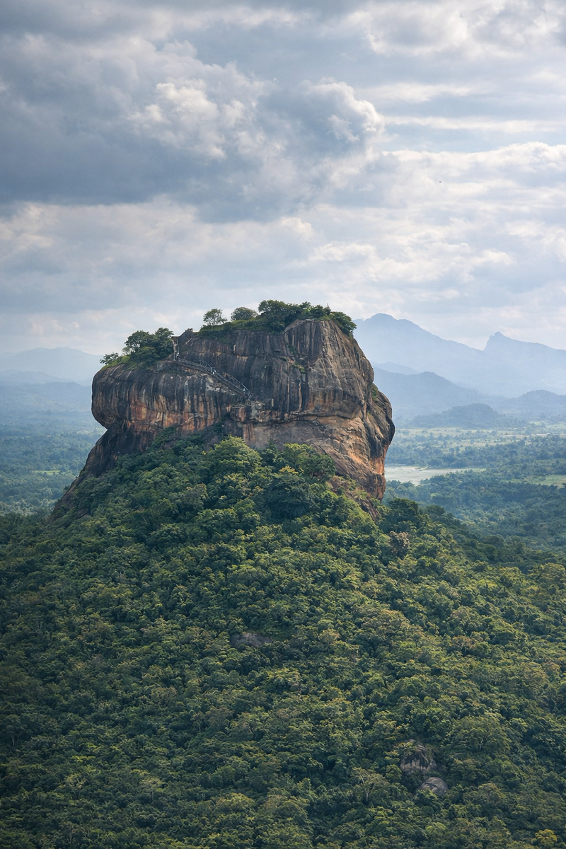 Сигирия — это древняя крепость , построенная на вершине огромной скалы посреди джунглей.