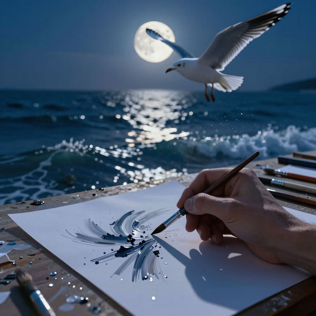 Я назвал картину «Чайка из сна». Повесил над столом. Теперь каждый раз, когда смотрю на неё, вижу не ошибки — вижу сон, детство, ручку, которая умела слушать глаза. И кисть, которая научилась говорить за меня.