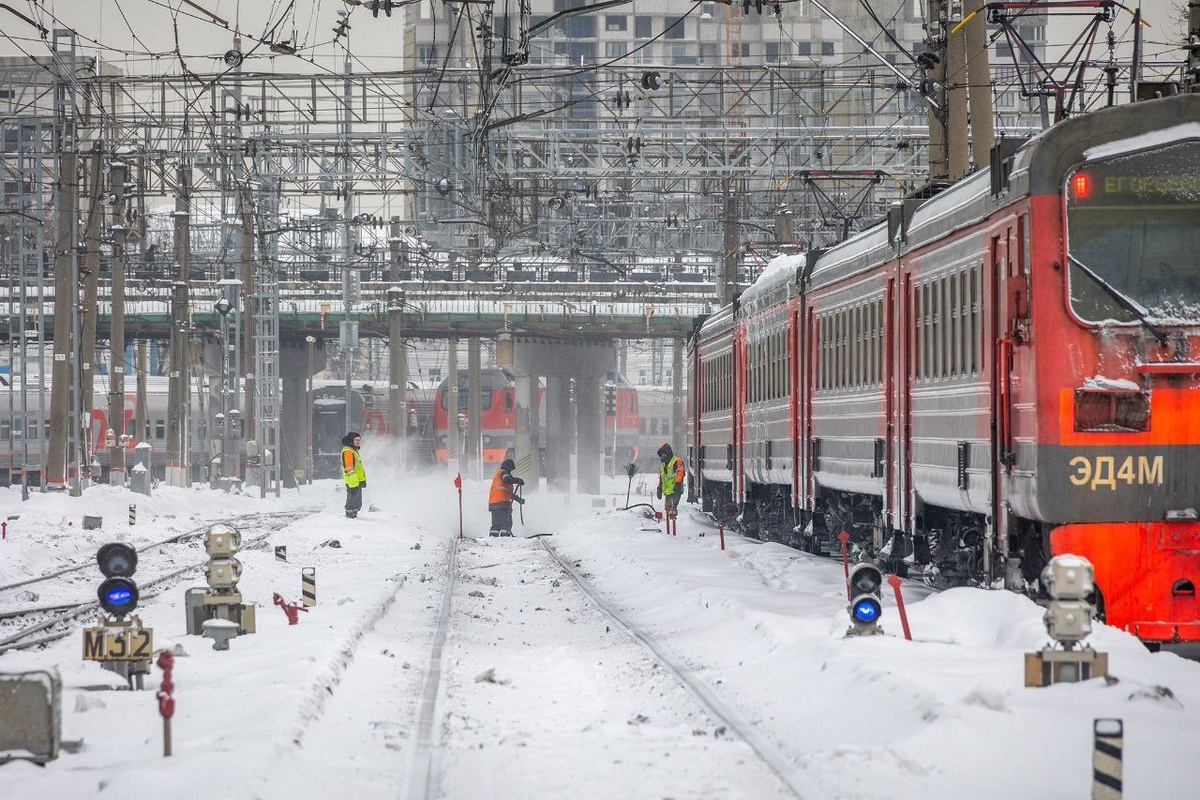 На Московской железной дороге продолжается круглосуточная работа по расчистке инфраструктуры от снега. За минувшие сутки: ➡️ очищено 3,6 тыс. км путей ➡️ вывезено 133 тыс. кубометров снега Сейчас на линию выведено более 100 единиц спецтехники. Машины курсируют по специальному расписанию, не создавая помех движению пассажирских поездов. Кроме того, более 4,5 тыс. человек убирают снег на путевой и пассажирской инфраструктуре. Подробнее