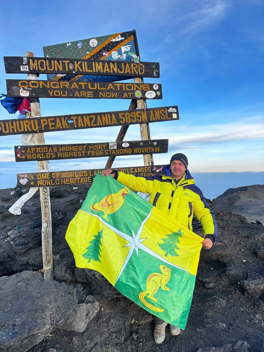 Сибирский альпинист развернул флаг Чунского района на вершине Килиманджаро