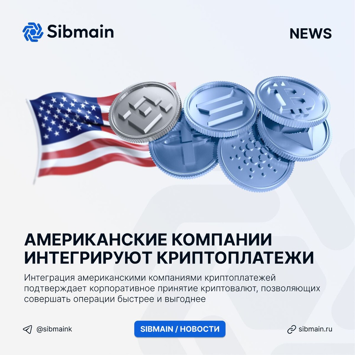 📰📰📰📰 ➡️Американские компании интегрируют криптоплатежи Согласно исследованию PayPal и Национальной ассоциации криптовалют, 39% продавцов в США начали принимать криптоплатежи. Причины перехода: ⏺Растущий спрос со стороны клиентов; ⏺Высокая скорость транзакций; ⏺Низкие комиссии при оплате 📍Интеграция американскими компаниями криптоплатежей подтверждает корпоративное принятие криптовалют, позволяющих совершать операции быстрее и выгоднее