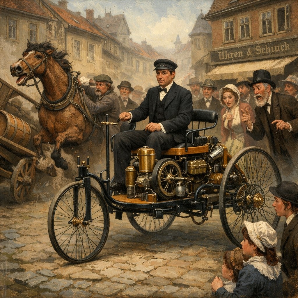 Вот заглянул в календарь - а там тихо отмечается 140 лет с того момента, как Карл Бенц вписался в историю патентом №37435 на «транспортное средство с газовым двигателем». 29 января 1886 года. Трёхколёсный Motorwagen, 0,9 л.с., максимум 16 км/ч. Для эпохи лошадей — революция. Но реакция публики оказалась… неоднозначной. Шум двигателя напугал лошадь мясника — та понесла и рассыпала груз. Чтобы загладить вину, Бенц купил испорченное мясо, убрал машину под навес и продолжил усовершенствовать своё детище. Сегодня мы требуем от машин автопилотов и цифровых технологий . А тогда хватило и того, что железная карета поехала сама — без кнута и овса. 🛻 День начинается с выбора: нервы или спокойствие. Выберите второе!