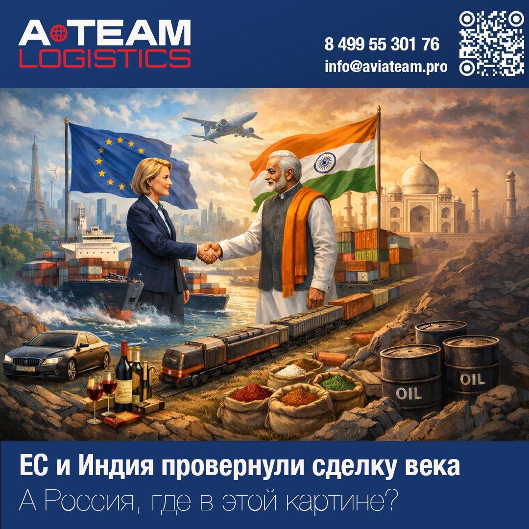 А Россия, где в этой картине? Индия и Евросоюз наконец-то пожали руки так, что хрустнуло: договор о свободной торговле согласован полностью. Да, тот самый, о котором говорили почти 20 лет. Теперь — это официально. Почему это история крупнее, чем кажется ➖Соглашение уже называют «матерью всех сделок» и это не маркетинг; ➖Оно затрагивает 1,4 млрд человек в Индии и сотни миллионов в Европе; ➖Под договором — почти 25% мирового ВВП и около трети всей мировой торговли; ➖Переговоры стартовали в 2007-м. Долго. Упрямо. А что в итоге – дожали! Что внутри? Если коротко: тарифный каток. ➖Соглашение охватывает 99% индийского экспорта в ЕС и 97% европейского экспорта в Индию; ➖ЕС отменяет или резко снижает пошлины почти на весь свой экспорт — это экономия до $4,75 млрд в год. Конкретика (чтобы было понятно, что это не абстракция): 🔘Автомобили из ЕС: пошлины падают с 110% до 10%, автозапчасти, тут вообще красота - под ноль через 5–10 лет; 🔘Вино: с 150% до 75%; 🔘Оливковое масло: с 45% до 0%; 🔘