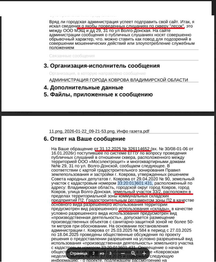 С юридической точки зрения это, увы, не так. 31 декабря 2025 года был направлен официальный запрос с указанием на возможные признаки нарушения закона, поскольку никаких публичных слушаний по проекту сквера не проводилось, несмотря на публикации в СМИ. Недавний ответ администрации это подтвердил: