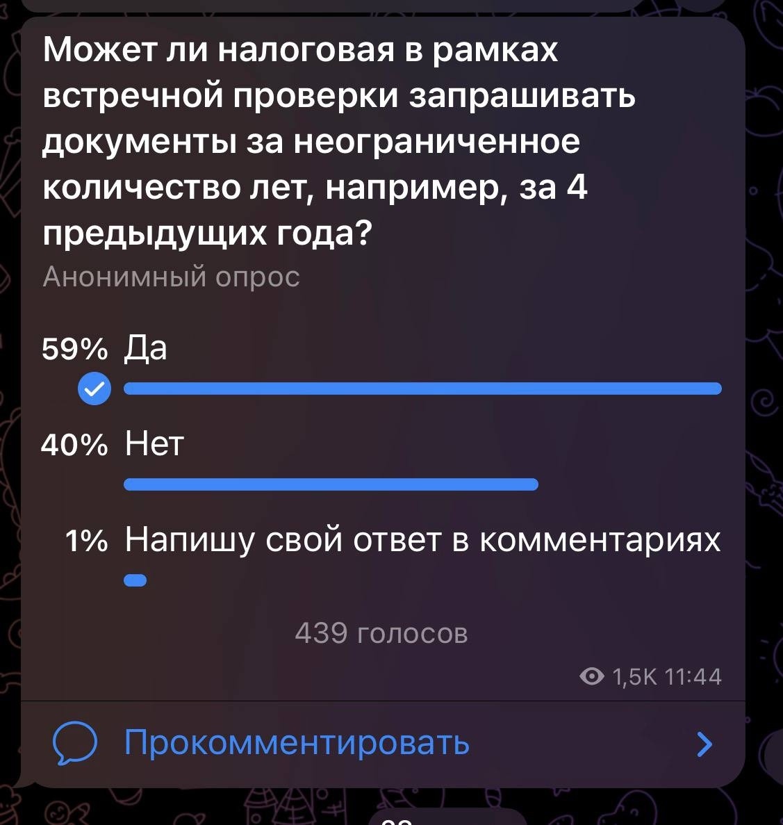 Добрый день, коллеги! Мы с вами проводили опрос по поводу требований документов, которые запрашивают за прошлый период, и по которым часто даже бывает такое, что запрашивают там задолго — даже за 10 лет могут запросить. В действительности такие требования есть, и сейчас, с учетом того, как именно проводится выездная проверка, я очень часто с таким сталкиваюсь. Многие просто по таким требованиям отвечают отказом. На самом деле налоговый орган имеет право запрашивать эти документы, если конкретно в их проверяемом периоде есть сделки, которые были совершены на основании этих документов, и они учтены в расходах/доходах, то есть попадают под проверяемый период их налогоплательщика. Это может быть как в рамках «встречки», так и в рамках проверки вас как налогоплательщика — например, если вы заявляете об убытке прошлых лет. То есть по убыткам прошлых лет вы должны хранить документы ровно столько, сколько вы их заявляете, плюс еще проверяемый период, в течение которого налоговый орган может ва