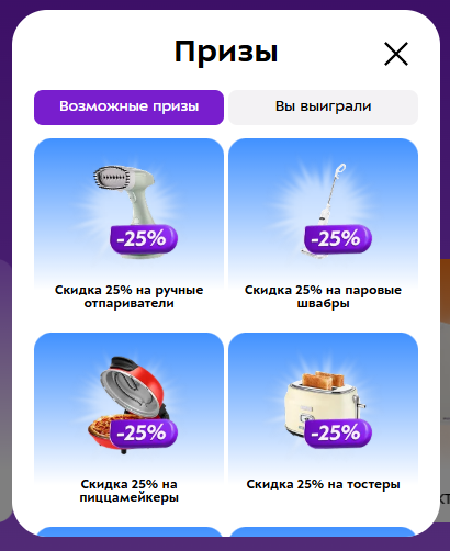Всем привет. Ловлю всякие скидки в разных "колесах призов". Пока правда что-то ценное вытащить не удалось, но я не отчаиваюсь. И вот недавно наткнулся на новое "колесо призов" - КитСпин от компании Китфорт. Делюсь первыми впечатлениями с вами) Вот такие призы можно вытащить из колеса: Пролистали галерею с призами? Что вам понравилось? Я бы хотел себе тостер за одну прокрутку колеса... Но пока не получилось. Крутил всего два раза и вот мои призы: Скидка на увлажнитель - это не плохо. Но такие вещи меня не интересуют. Второй приз - 3 китспина - это монетки за которые вращается колесо призов КитСпин. А как зарабатывать китспины? Все просто - нужно заходить каждый день в игру и забирать свои китспины: Завтра буду крутить колесо с призами и обязательно поделюсь с вами своими. А вы можете делиться своими призами в комментариях. И не забывайте подписываться на канал