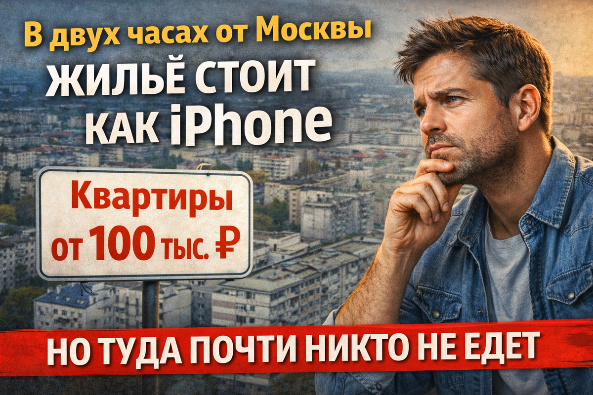 В двух часах от Москвы: город, где жильё стоит как iPhone, но туда почти никто не едет Разговоры о доступном жилье рядом с Москвой обычно заканчиваются одинаково. «Либо далеко, либо плохо, либо ненадолго». Цены в Подмосковье давно перестали удивлять, а формула «дёшево и близко» кажется чем-то из прошлой жизни. Но есть один парадоксальный факт: в двух часах езды от столицы до сих пор можно купить жильё по цене нового iPhone. И самое странное — туда не выстраивается очередь. Речь не о глухой деревне и не о месте, куда можно добраться только на внедорожнике. Это обычный российский город с вокзалом, трассой, автобусами и магазинами. Формально — всё, что нужно для жизни, есть. До Москвы — электричка или автомобиль. Казалось бы, идеальный вариант для тех, кто устал от столичных цен. Но реальность сложнее. Цены на жильё здесь действительно выбивают из привычной картины. Комнату можно найти за сумму, сопоставимую со стоимостью флагманского смартфона. Однокомнатная квартира стоит как подержанны