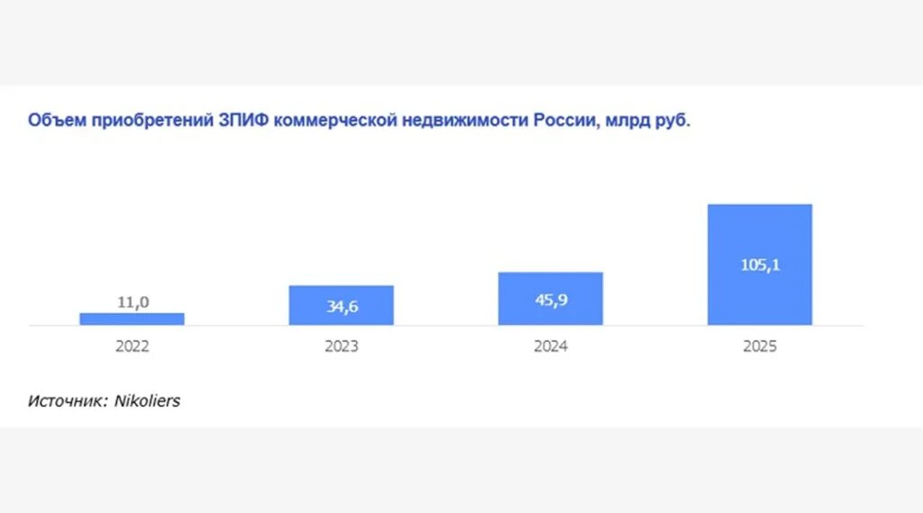 По итогам 2025 года закрытые паевые инвестиционные фонды (ЗПИФы) в 2,3 раза увеличили инвестиции в коммерческую недвижимость — до 105 млрд рублей