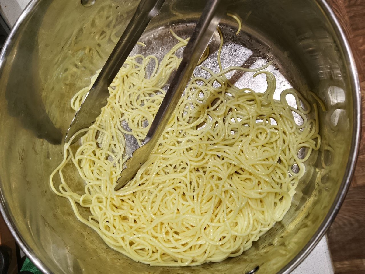 Сушеная лапша является неотъемлемой частью китайских запасов. Ее можно легко хранить в прохладном, сухом месте, и она сохранится в течение нескольких месяцев. Чтобы максимально эффективно использовать любую упаковку сушеной лапши, следуйте инструкциям ниже: 1. Положите лапшу в большую миску. 2. Полностью залейте лапшу кипятком и оставьте на 3–5 минут (в зависимости от толщины лапши). Примечание: если оставить лапшу в воде слишком долго, она станет слишком мягкой и не будет иметь той «аль денте» текстуры, которая должна быть у нее после приготовления. 3. Как только лапша размокнет и хорошо разделится (по сути, как только она потеряет форму упаковки), сразу же слейте воду через сито и промойте лапшу холодной водой. 4. Накройте поднос чистым кухонным полотенцем и выложите на него лапшу. 5. Для достижения наилучших результатов оставьте лапшу сушиться на 20 минут перед использованием. В качестве альтернативы, чтобы ускорить процесс сушки, поместите макароны в духовку с вентиляторо
