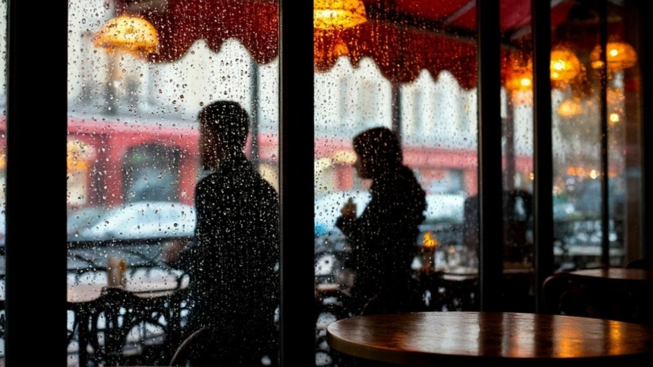 Капли дождя текли по стеклу, размывая лица прохожих в мутные пятна.