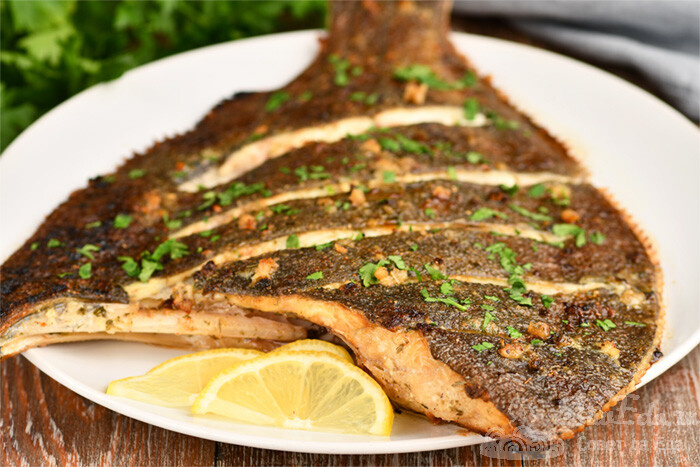 2 варианта. Так можно готовить любую нежирную рыбу. Дополняю рыбу простыми продуктами, а в итоге получается сочная, очень арматная и вкусная рыба. Готовить просто и легко. Результат замечательный. Покажу на примере камбалы. 1. Рыба с ароматным маслом. Камбалу (1 шт., 550 г) заранее размораживаем, удаляем внутренности и отрезаем плавники. С темной или светлой стороны, как у меня, делаем глубокие разрезы наискосок. Поливаем рыбу со всех сторон соком лимона (от 1/4 части), посыпаем солью и молотым перцем. Размещаем в форме, смазанной растительным маслом. Внутрь рыбы добавляем отжатый лимон и целые веточки петрушки (2 шт.). В миску выкладываем размягченное сливочное масло (40 г), измельченный через пресс чеснок (2 зубчика) и нарезанную петрушку (4 веточки). Хорошо перемешиваем и чесночное масло готово. Чеснок прекрасно сочетается с рыбой. Он помогает сбалансировать специфический морской аромат камбалы и подчеркивает нежный вкус ее белого мяса. Сливочное масло делает нежирную рыбу более со