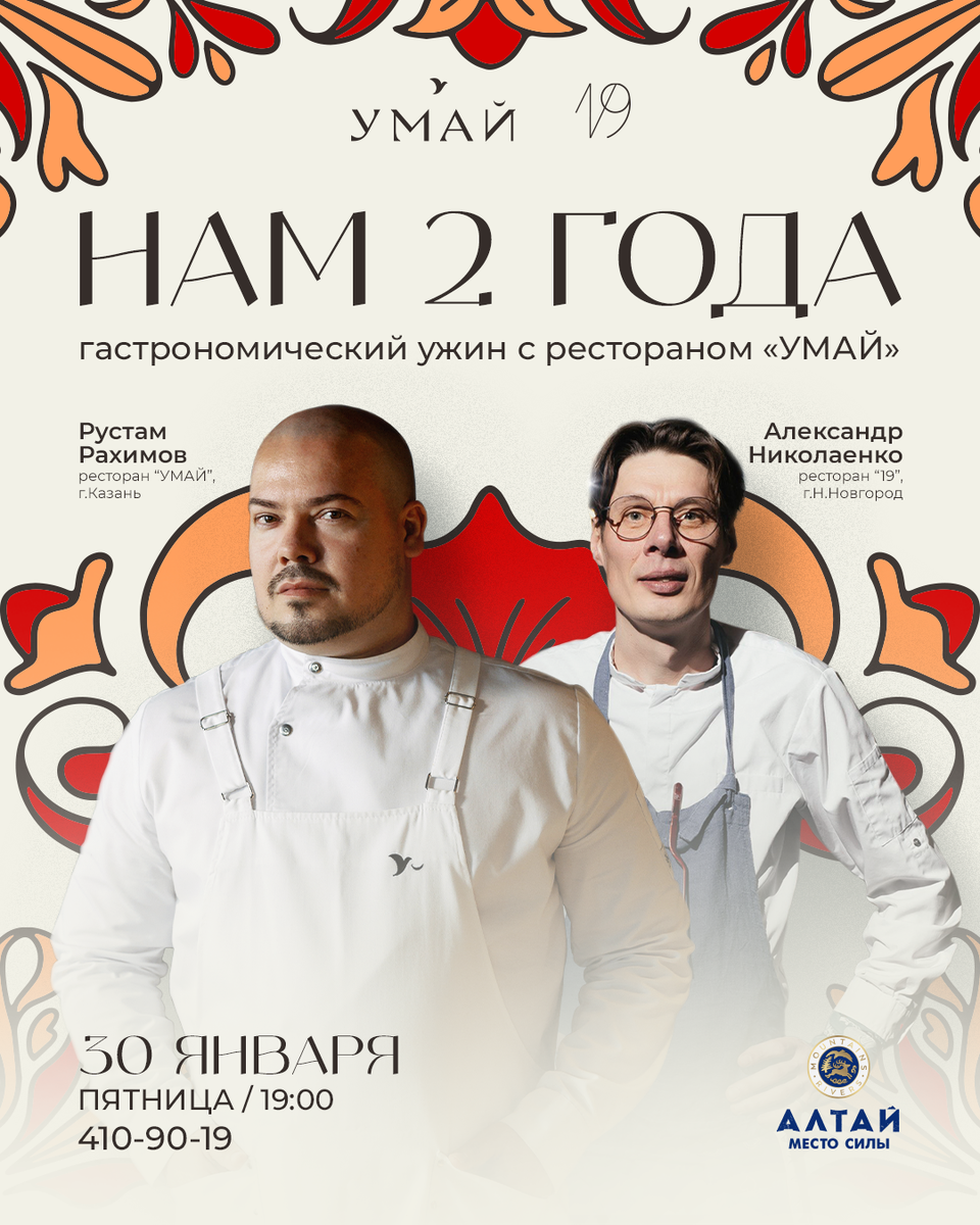 Нижний Новгород 30 января в ресторане «19» пройдут гастроли ресторана современной татарской кухни «Умай» (Казань). В честь дня рождения ресторана гостей ждет ужин от двух легендарных шефов — Александра Николаенко и Рустама Рахимова. В рамках ужина шефы предложат гостям 7 авторских блюд: И, конечно же, будет праздничный торт. Создавать праздничную атмосферу и наполнять вечер искренними эмоциями будет живая музыка от нижегородского кавер-дуэта. По окончанию ужина гостей ждут подарки от партнеров мероприятия и особый сюрприз от ресторана. Цена - от 10 тыс руб. Начало в 19:00 Ошарская ул, 8А Краснодар 11 февраля в баре «Детектив, где вы?» состоится гостевая смена столичного ресторана и бара Sangre Fresca. За стойкой в этот вечер - бартнедеры команды: Михаил Сивак, Евгений Штрек и Михаил Григорьев. Для гостей ребята подготовили специальное коктейльное меню, вдохновленное мексиканской барной культурой и фирменным стилем Sangre Fresca. Начало в 19:00 Красноармейская ул, 45
