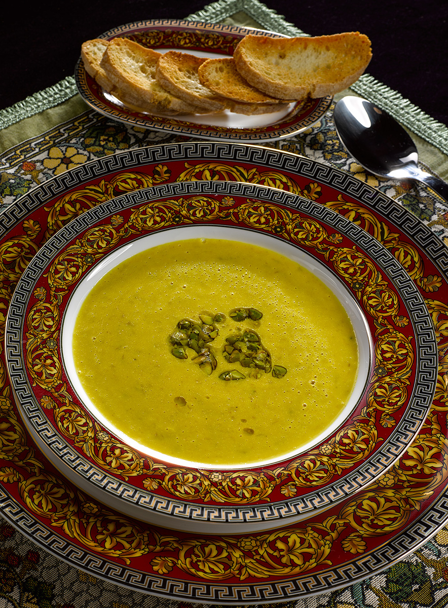 Ладно, блендер, блендер. Без ножа на кухне все равно не обойтись. Знаете, как называется суп, который мы сейчас готовим? Я назвал его "Фальшивый фисташковый суп". Нет, можно ж было приготовить и с фисташками, а не с машем. Но ведь и с машем вкусно, а по цвету подходит!
