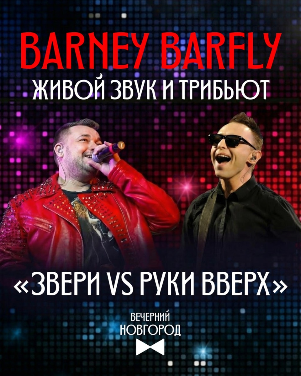 ✨ BARNEY BARFLY — живой звук и трибьют «Звери vs Руки Вверх