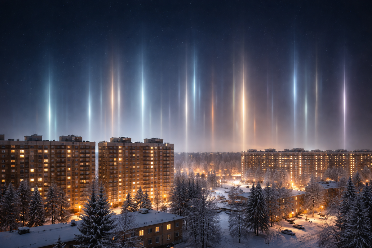 Жители Бугров заметили редкие световые столбы в ночном небе В Буграх ночью произошло нечто удивительное. Местные увидели загадочные световые полосы. Явление вызвало бурю эмоций. Эксперты объяснили, как оно возникает. Фотография: Peterburg2.ru В ночь с 28 на 29 января жители поселка Бугры стали свидетелями по-настоящему необычного зрелища. Над домами и улицами вдруг появились вертикальные полосы света, словно кто-то нарисовал их на темном небе золотисто-оранжевыми мазками. Это явление, известное как световые столбы, редко встречается в европейской части России, и потому вызвало немалый ажиотаж среди очевидцев. Световые столбы - не просто красивый оптический эффект. Они возникают, когда в морозном воздухе формируются мельчайшие кристаллы льда. Эти кристаллы, словно крошечные зеркала, отражают свет от уличных фонарей, автомобильных фар и других источников, создавая иллюзию светящихся колонн, уходящих ввысь. В ту ночь в Буграх их высота, по оценкам очевидцев, достигала 40 метров, а цвет ва