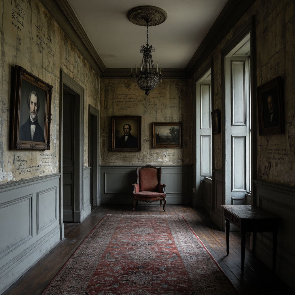 - в библиотеке — следы грязи на паркете, ведущие к портрету прадеда. Сам портрет… изменился. Глаза, раньше спокойные, теперь смотрели прямо на Александра;