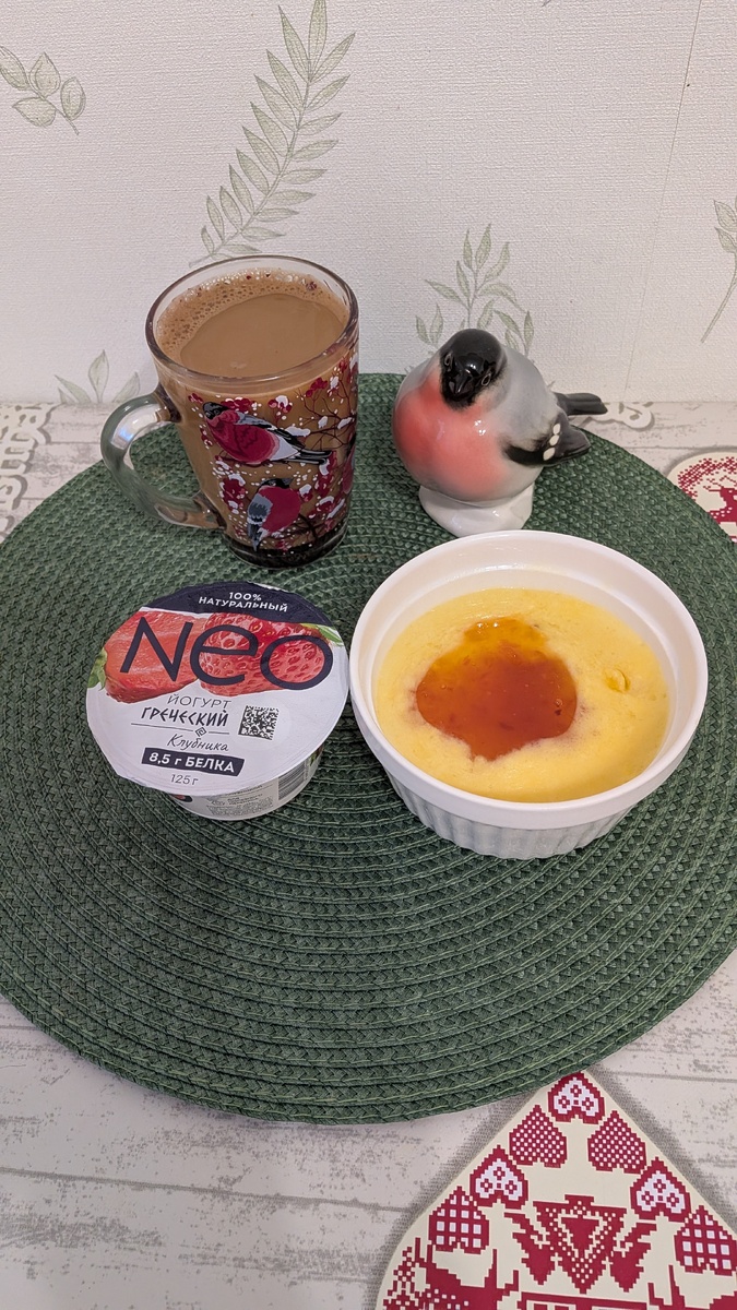 Завтрак: пшенная каша с тыквой и йогурт, кофе с молоком. 341 ккал.