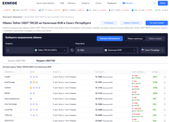 Ключевую роль в выборе надёжного сервиса играет мониторинг Exnode. Он помогает заранее сориентироваться на рынке, увидеть актуальные предложения и перейти к проверенным площадкам, которые действительно принимают клиентов офлайн в Санкт-Петербурге. Такой подход экономит время и снижает вероятность ошибок при первой и последующих сделках.