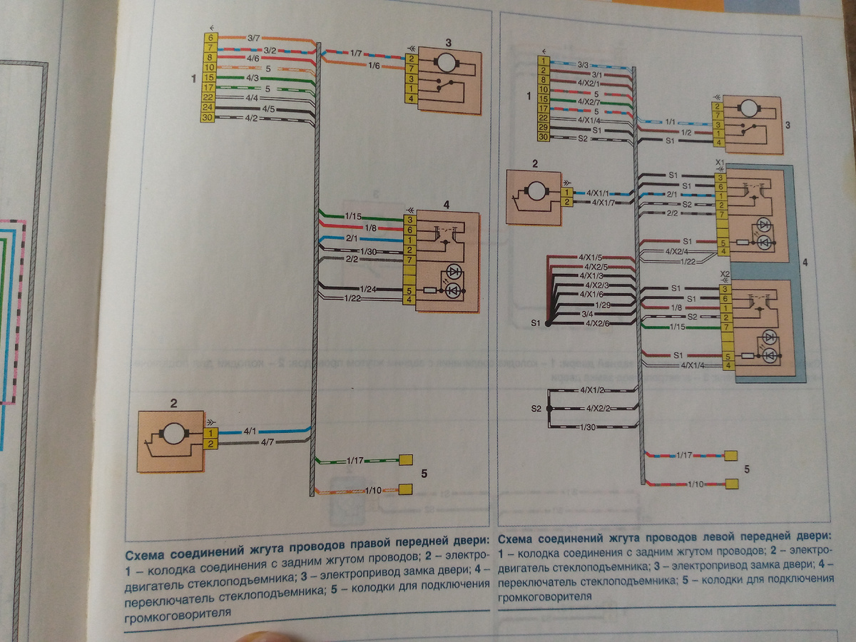 Подробная схема как соединяются все компоненты в левой и правой двери лада гранта.
