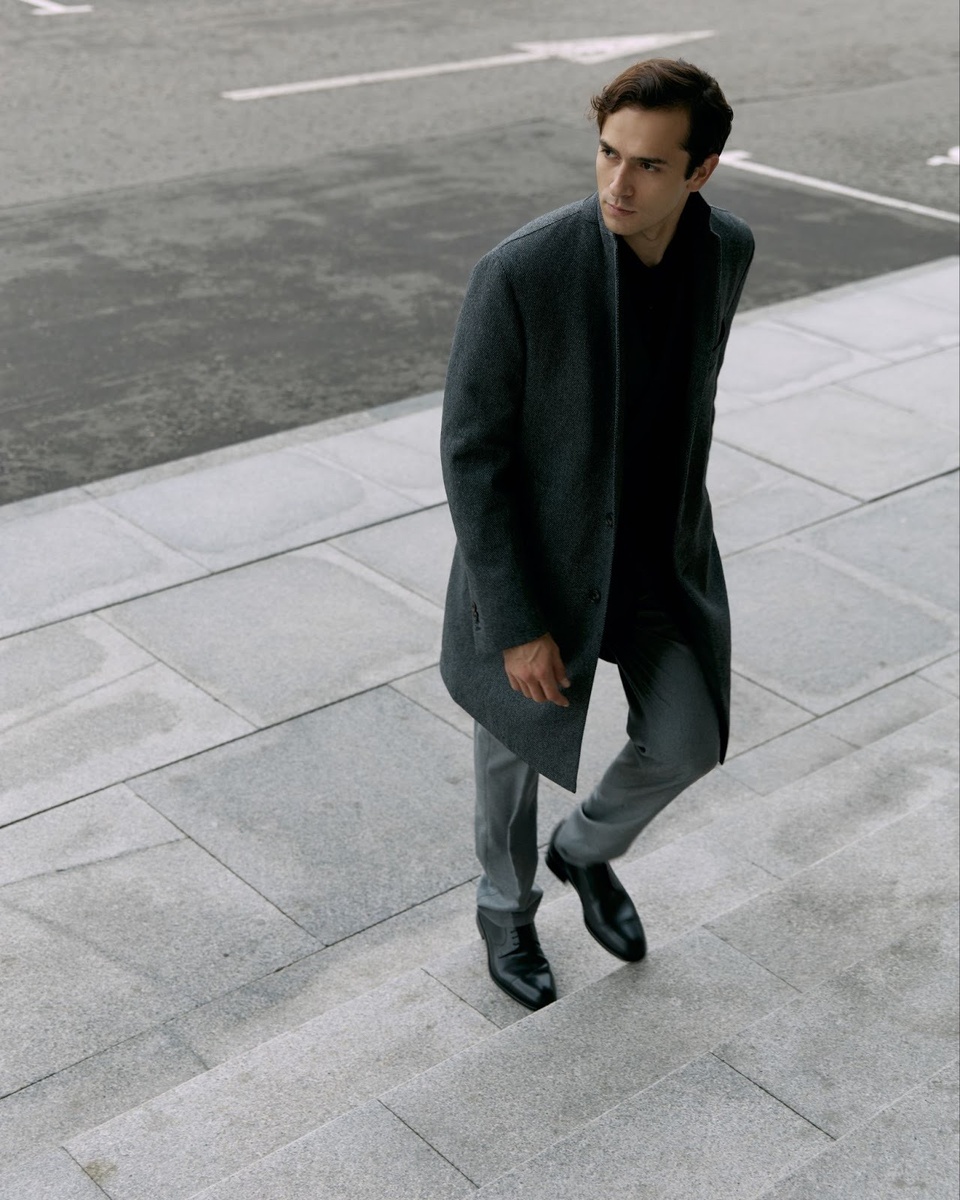 - Серый костюм: черные туфли — классика, коричневые — для более мягкого впечатления.