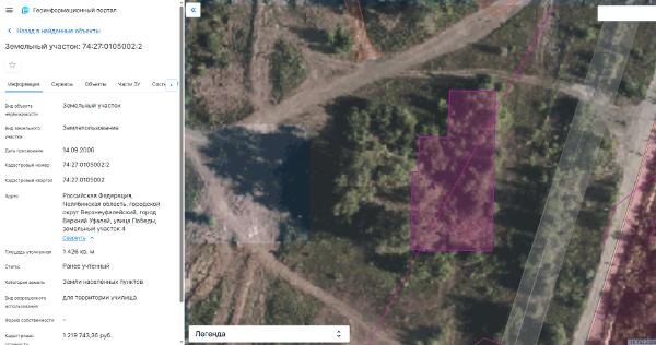 Название: Земельный участок из земель населенных пунктов с кадастровым номером 74:27:0105002:2 площадью 1 426 кв