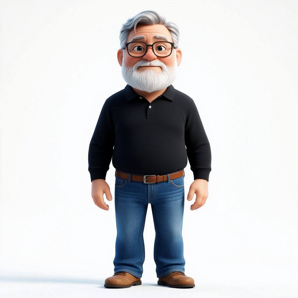 - Волосы. Седые, с благородной серебристой гаммой. Волосы умеренно густые, слегка волнистые, небрежно уложенные — без нарочитой причёски, что подчёркивает непринуждённый творческий стиль. В них читается отпечаток времени и жизненного опыта.