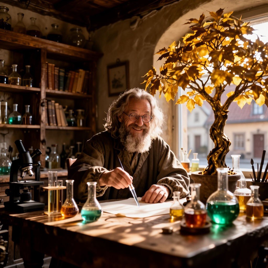 В далёкой земле, где башни лабораторий тянулись к облакам, жил алхимик по имени Элиас. Руки его знали тайну превращения свинца в сияние, но сердце было тяжело, как чугунный котёл.