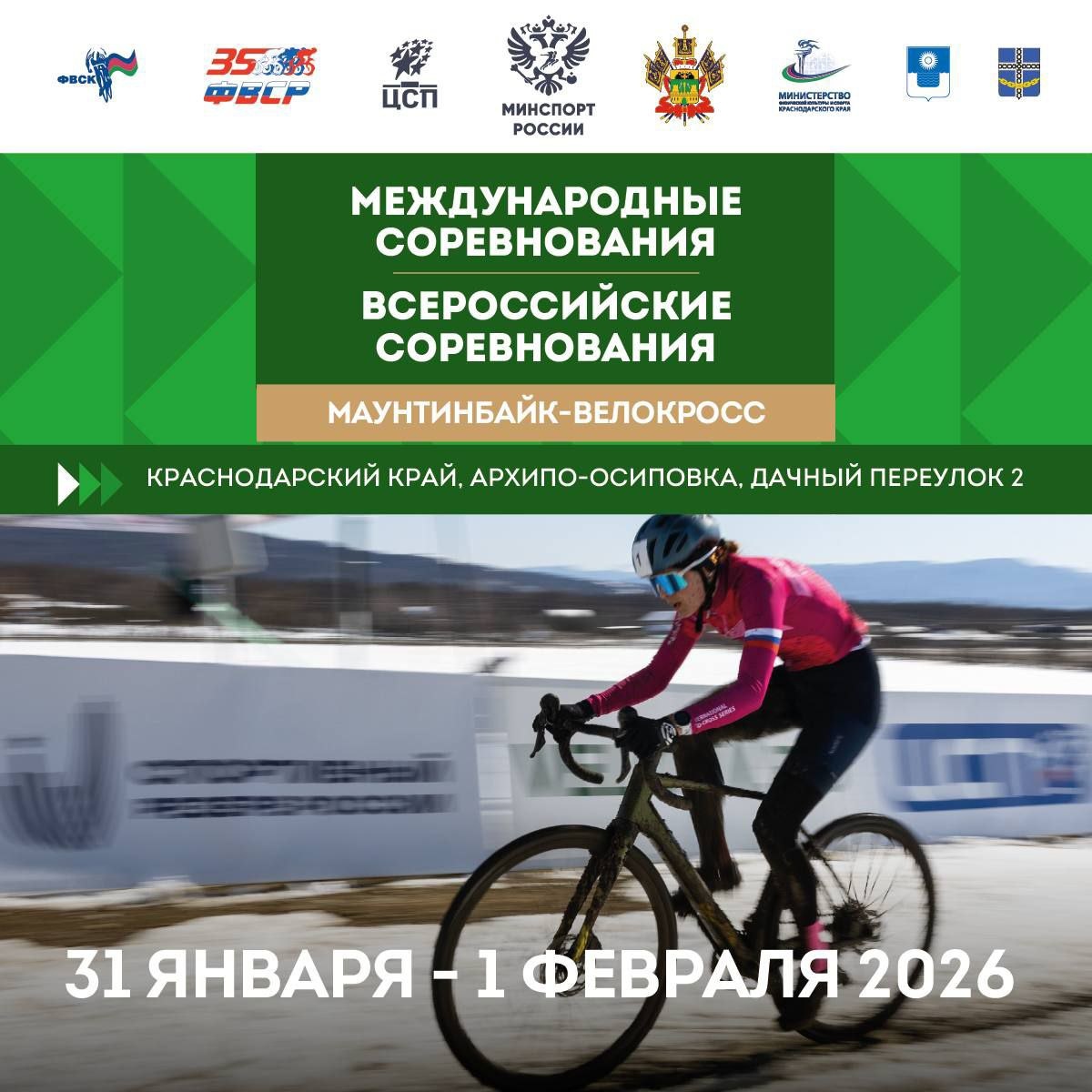 ! Мы рады объявить об открытии долгожданного кроссового сезона 2026 года. Главной площадкой для международных соревнований 31 января и 1 февраля станет живописное село Архипо-Осиповка Краснодарского края. На старт выйдут ведущие гонщики страны, включая лидеров сборной команды по маунтинбайку. Вас ждут захватывающие заезды на трассах, полных препятствий и технических участков. ПРОГРАММА: 30 января (пятница). День приезда. 10:00-12:00 Комиссия по допуску (ВС) 11:00-12:00 Комиссия по допуску (МС) Краснодарский край, с. Архипо-Осиповка, ул. Рабочая 40А 31 января (суббота): 11:00 — юноши 13−14 лет (ВС). 11:45 — девушки 13−14 лет (ВС). Нашраждение. 12:30 — юниоры 17-18 лет (МС). 13:20 – женщины, юниорки 17-18 лет (МС). Награждение. 01 февраля (воскресенье): 11:00 — юноши 15-16 лет (ВС). 11:45 — девушки 15-16 лет (ВС). Награждение. 12:30 — мужчины (МС) Награждение. Адрес: село Архипо-Осиповка, Дачный переулок. Вход свободный, приходи поддержать гонщиков и зарядиться атмосферой велоспор