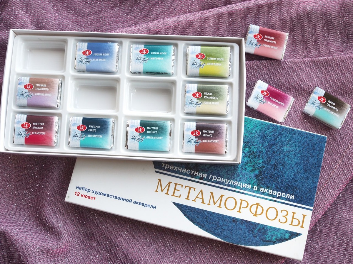 ✨ Пополнение в рядах гранулирующих «Белых ночей» — серия Метаморфозы. Теперь в наборе! В серию входят 3 тематические линии: 🫐 «Мечта» – лёгкие, воздушные оттенки с переливами (мятный, розовый, зелёный, голубой). 🍃 «Туманность» – природные нюансы туманных пейзажей (лесные, утренние, вечерние, горные тона). 🍇 «Мистерия» – насыщенные контрастные цвета с глубокой грануляцией (зелёный, синий, красный, чёрный). Трехчастная грануляция акварели означает, что каждый цвет распадается на три оттенка, что делает каждый мазок уникальным. 🤫 Ждём в магазинах, а также смотрите сайт: 🫧 поштучно 🫧 набор