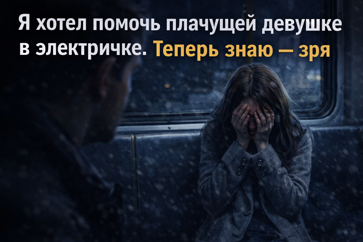 Это случилось со мной в одной из подмосковных электричек, когда я ехал домой поздним вечером. Было уже темно, вагон полупустой — почти все спали или уткнулись в телефоны. И вдруг я заметил её. Она сидела в углу — девушка в сером пальто, с опущенной головой. Но что-то было не так: тихо, почти неслышно, она плакала. Не всхлипывала, а именно плакала — чуть слышно, как будто боялась, что кто-то услышит. Я сначала не хотел вмешиваться, думал, может, просто устала. Но через несколько минут она подняла глаза, и вдруг как-то странно посмотрела прямо на меня. Глаза были мокрые, а взгляд — будто зовущий на помощь. Я решился подойти и спросить, всё ли в порядке. Но как только я заговорил, поезд замедлил ход, и вагон наполнился гулкой тишиной. Девушка не ответила, только снова уткнулась в руки.