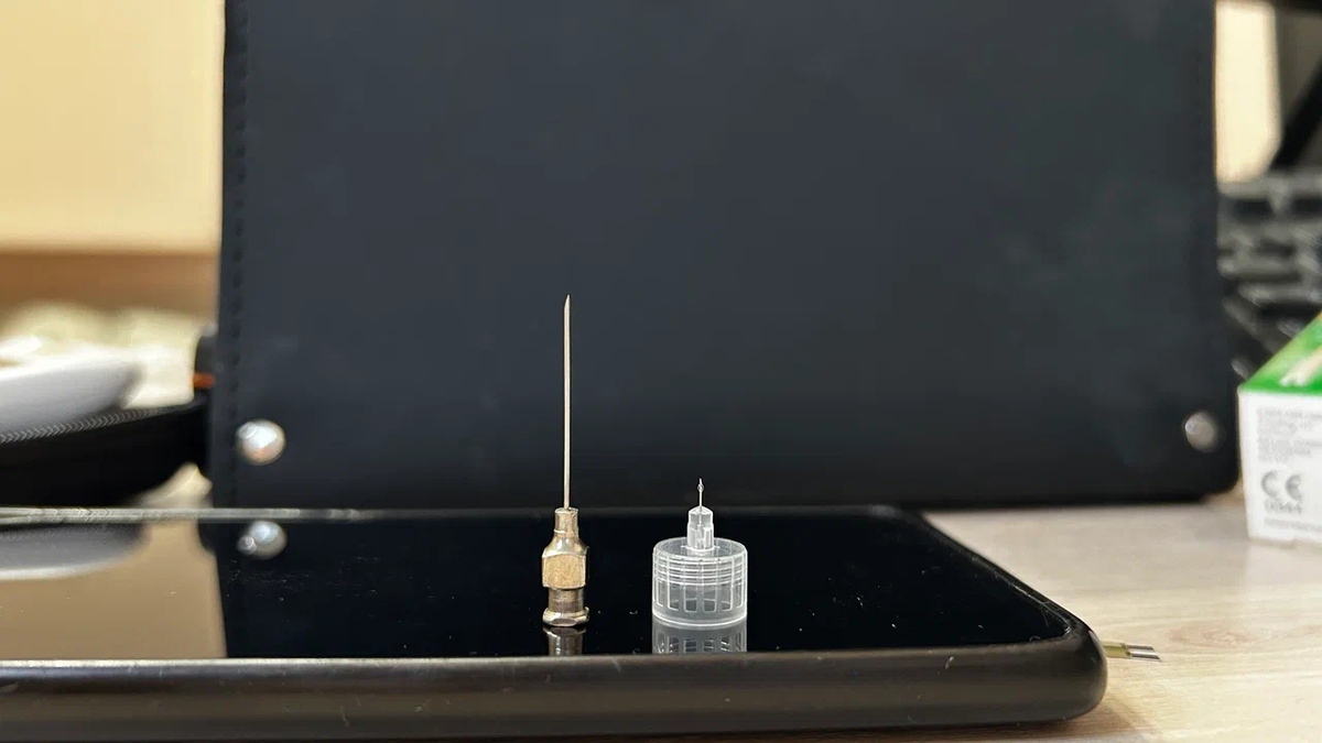 Говорите, уколы больно делать? Иголками 4-6 мм? Ну-ну... =) Нашла в закромах иглу, которой мне уколы делали в детстве: 24 мм - многоразовая! И это еще лайтовая иголочка, были 30-40 мм. Рядом с ней - инсулиновая игла 4 мм. Заболела я диабетом в 4 года, в 1989 году. А еще мы, диа-динозавры, иглы эти: - кипятили, - использовали много раз, - затачивали вручную. Уколы делали практически в мышцу, иглу вводили под 90 градусов. Считалось, что чем глубже введешь, тем лучше будет всасываемость инсулина. Прикиньте, вот такое впендюрить 4-летнему ребенку?! Да еще и тупой иглой. До сих пор это помню, и мурашки по коже бегут. А отсюда и частые тяжелые и непредсказуемые гипо, привет! А еще нестабильность сахаров и полнейшая хаотичность даже при строжайшей дисциплине. А еще липогипотрофии и липодистрофии... Самое любимое и безболезненное для меня место было - под лопаткой. И как же я рада, что медицина сделала огромный прорыв, и вся эта "романтика" осталась только в воспоминаниях диа-динозавров да в з
