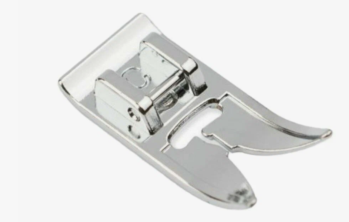 Что это: стандартная лапка, которая идёт в комплекте почти со всеми бытовыми машинками. Имеет широкое отверстие для зигзагообразного стежка.