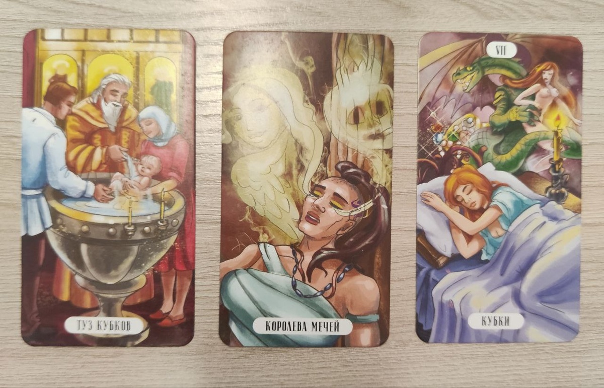 🌟 Карты Дня: Туз Кубков, Королева Мечей и Семёрка Кубков