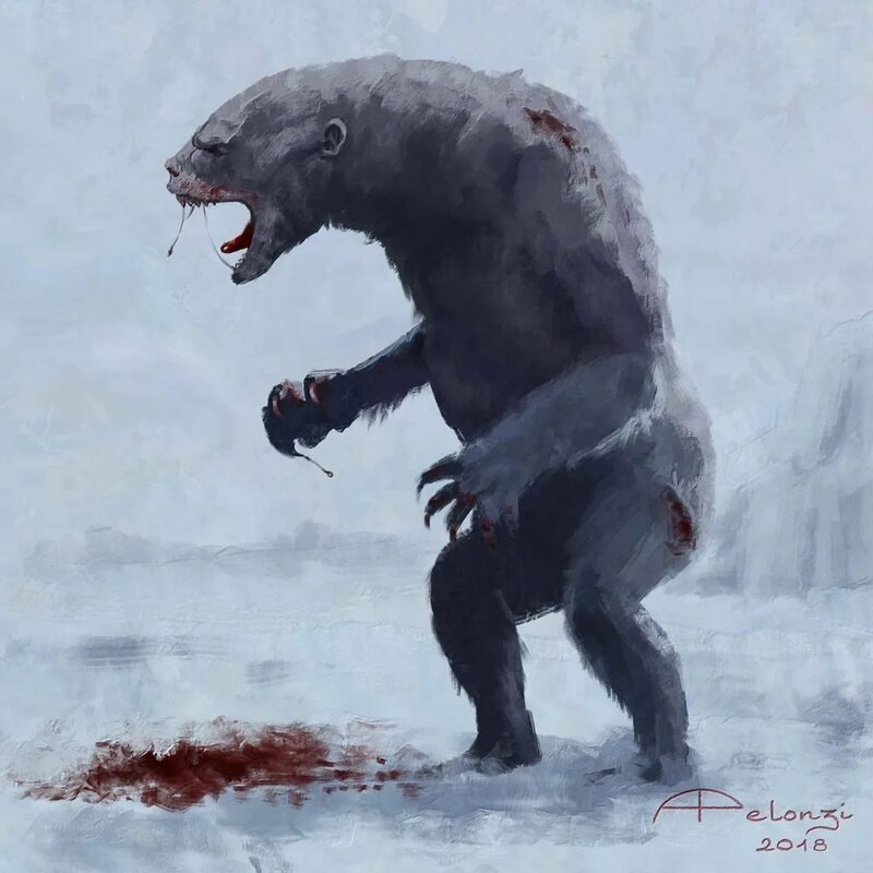 Представляете какое чувство у человека внутри, ты не знаешь где и когда появиться это чудовище. Мы с каким то мужиком вышли по дороге за деревню и стоим и смотрим вдаль на дорогу. Тут на снегоходах и на вездеходах появляются военные люди. Они все одеты в белую маскировочную одежду и техника тоже под зиму раскрашена. Вооружены всяким вооружением. Остановились возле нас, поздаровались, но не ругались на то что мы тут находимся. А смысл прятаться, бесполезно и неизбежно при появлении этих тварей гарантированно ваша погибель. Стали разговаривать про этих гадов. Говорят у них шерсть верхняя длинной сантиметров под тридцать и по прочности как нити кевлара. А так называемый подшерсток состоит из тонких типа тросиков и каждый такой тросик на конце распущен, словно посеченный волос. И вот вся эта масса засчет распущенных, посеченных кончиков сцеплена между собой так, что пуля или небольшой снаряд отлетают от них как от батута. Шкура у них сантиметровой толщины, а жировая прослойка сантиметров пять. И шкура словно броня, а жировая прослойка как пуленепробиваемая резина. Вобщем зверюга неубиваемый. Я так и непонял они хоть одного одолели или нет. Вобщем они сели на свою технику и помчались дальше патрулировать местность.
