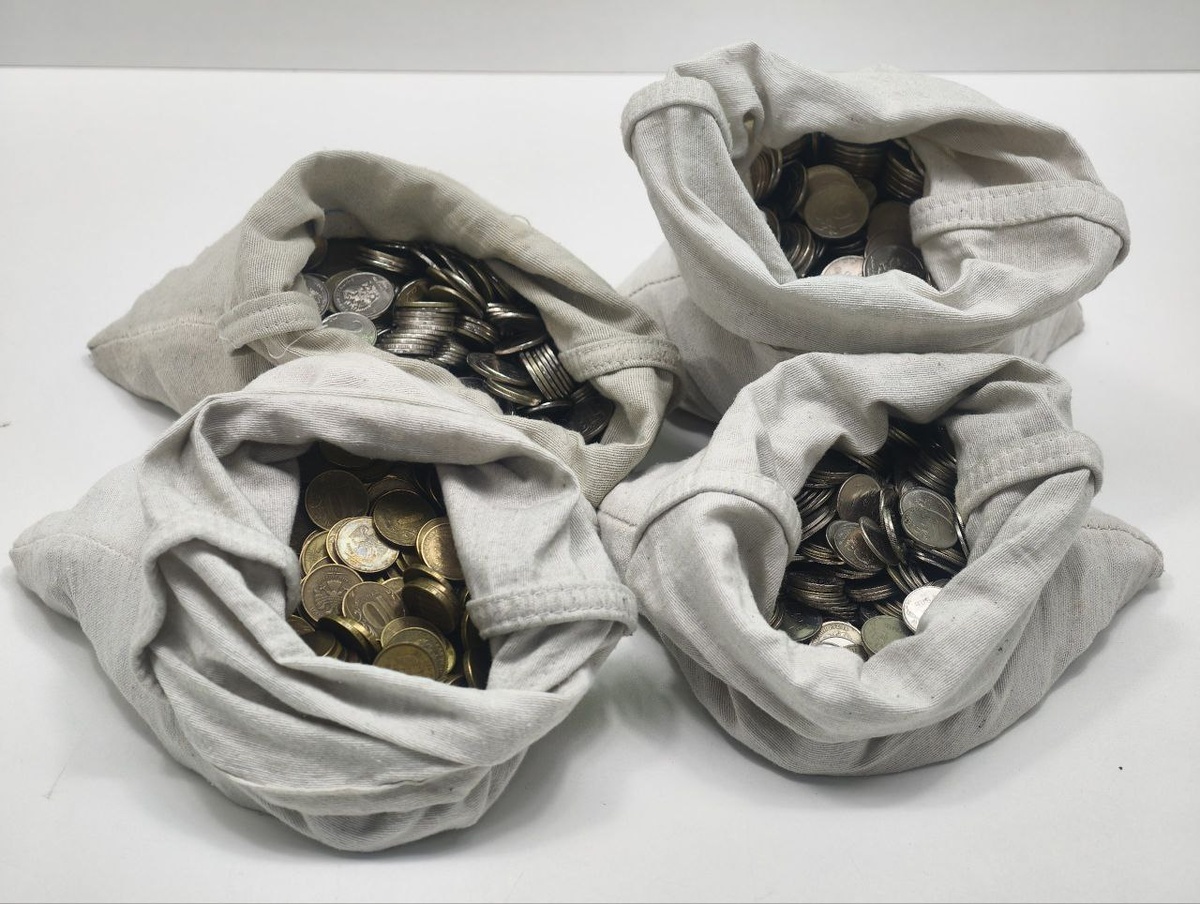 Размен для клиентов готов. Леприконы по нашей просьбе собрали 18000 рублей мелочью и доставили нам. Посмотрите, какие мешочки классные:)