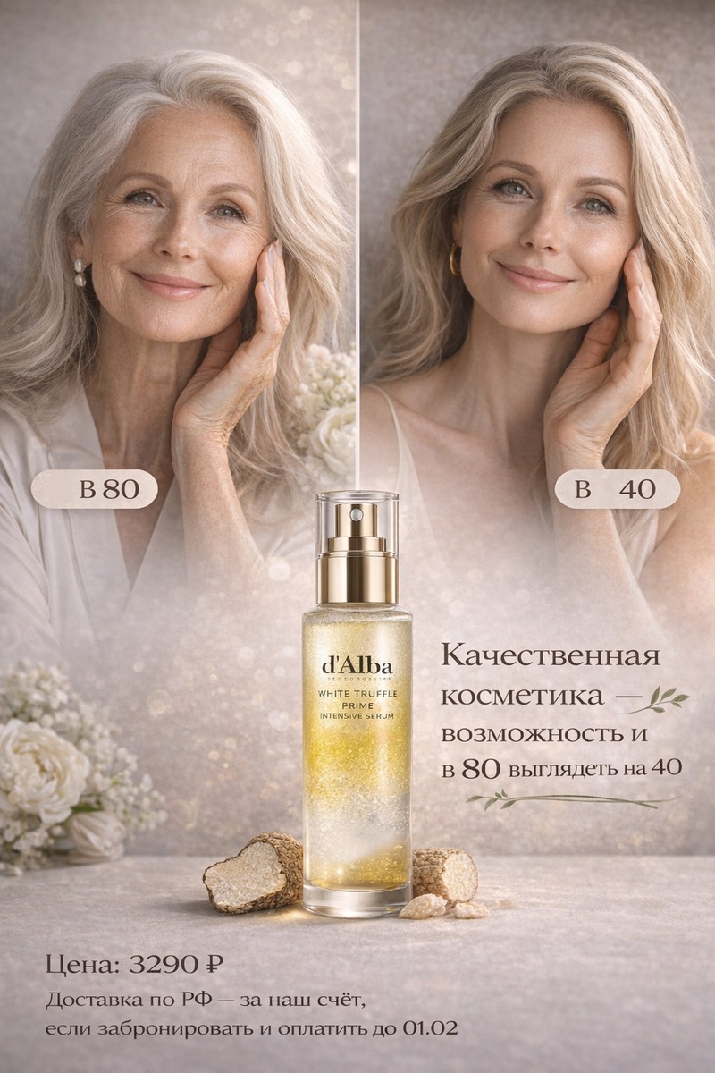 Сегодня речь пойдет про новый тренд — старение как привилегия, а не как приговор. Мы вдруг начали вслух говорить о том, о чём раньше стеснялись - о возрасте. Ещё каких-то 100 лет назад средняя продолжительность жизни была 45–55 лет. Сейчас — 80+. И морщины, меняющийся овал, другие черты лица — это не «что-то пошло не так». Это просто следы длинной жизни. 40 — это не «уже». 50 — не «поздно». 60 — не «страшно». Страшно — не дожить. А жить долго, активно, с интересом и удовольствием — это счастье! Меняется не только продолжительность жизни. Меняется философия ухода. Мы больше не пытаемся выглядеть «на 20». Мы хотим выглядеть хорошо для своего возраста — с ухоженной кожей, сиянием, плотностью, здоровым цветом лица. И тут важен не объём косметички, а качество и регулярность. Современный уход — это не борьба со временем. Это поддержка кожи, пока она живёт, работает, обновляется. Про косметику будущего (которая уже здесь) Если и говорить о трендах долголетия в уходе, то это средств