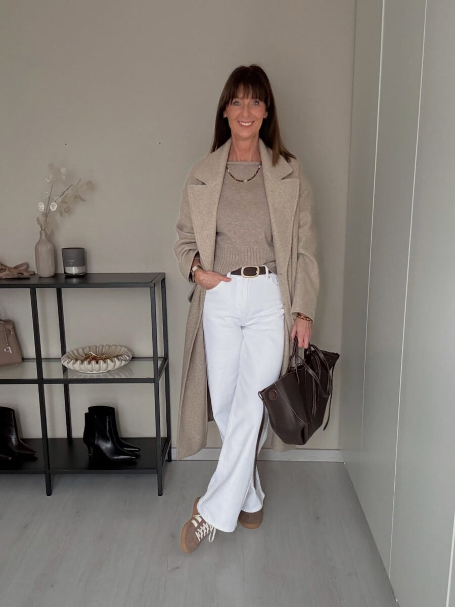 Кто сказал, что мода имеет возраст? Настоящая элегантность и чувство стиля не знают ограничений! Сегодня хочу вдохновить вас, дорогие дамы, на создание простых, но невероятно стильных образов, используя лишь несколько базовых вещей из вашего гардероба. Собрала 10 готовых идей, которые подчеркнут вашу индивидуальность и подарят уверенность в себе. Бежево-коричневая палитра всегда выглядит дорого и актуально. Белые джинсы – символ свежести и легкости. Их идеально дополняет бежевый джемпер. Бежевое шерстяное пальто – элегантный завершающий штрих. Бежевые брюки расслабленного силуэта – комфорт и стиль в одном флаконе. Ремень, кофта и сумка в насыщенном бордовом цвете – создают яркий и запоминающийся акцент. Сочетание свободных джинсов с фактурным джемпером выглядит интересно и эффектно. Ботинки и сумка по цвету перекликаются с ремнем, создавая гармоничный ансамбль. Изумрудный цвет прекрасно сочетается с серым, создавая гармоничный и свежий ансамбль. Этот образ демонстрирует, как с помо