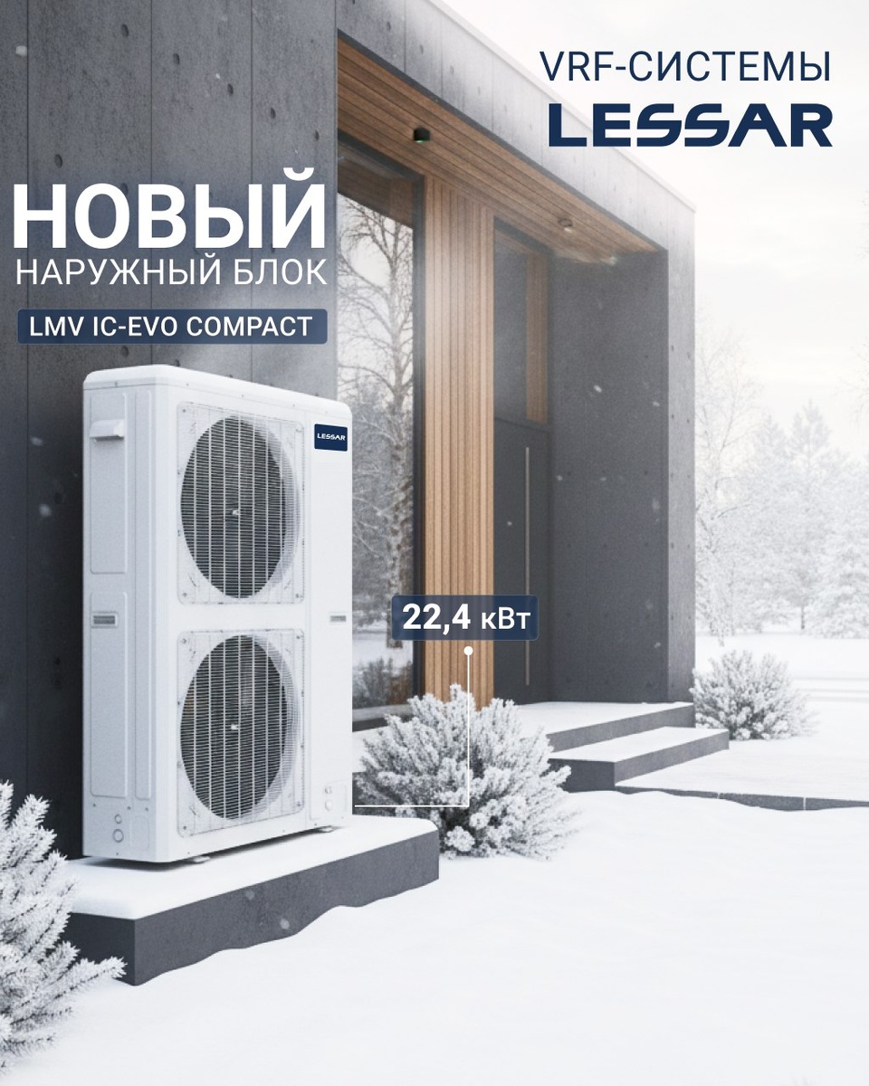 🥁 Новый наружный блок COMPACT на 22,4 кВт у VRF-систем LESSAR EVO! Он работает на охлаждение от -5 °С до +52 °С, а на обогрев – от -20 °С до +27 °С. Преимущества LUM-AHE224AX6A4-C: 🔹 В новом компрессоре используются самые современные технологии. 🔹 Устойчивый запуск при встречном ветре (до 4 баллов). 🔹 Надежный запуск при перегрузках. 🔹 Оптимизированная электропроводка. Индивидуальный наружный блок LMV IC-EVO COMPACT с горизонтальным выбросом воздуха отличается малыми габаритами и весом, а также значительно меньшей стоимостью по сравнению со стандартными наружными блоками модульной компоновки. 📲 Узнать подробности и оформить заказ можно у вашего персонального менеджера!