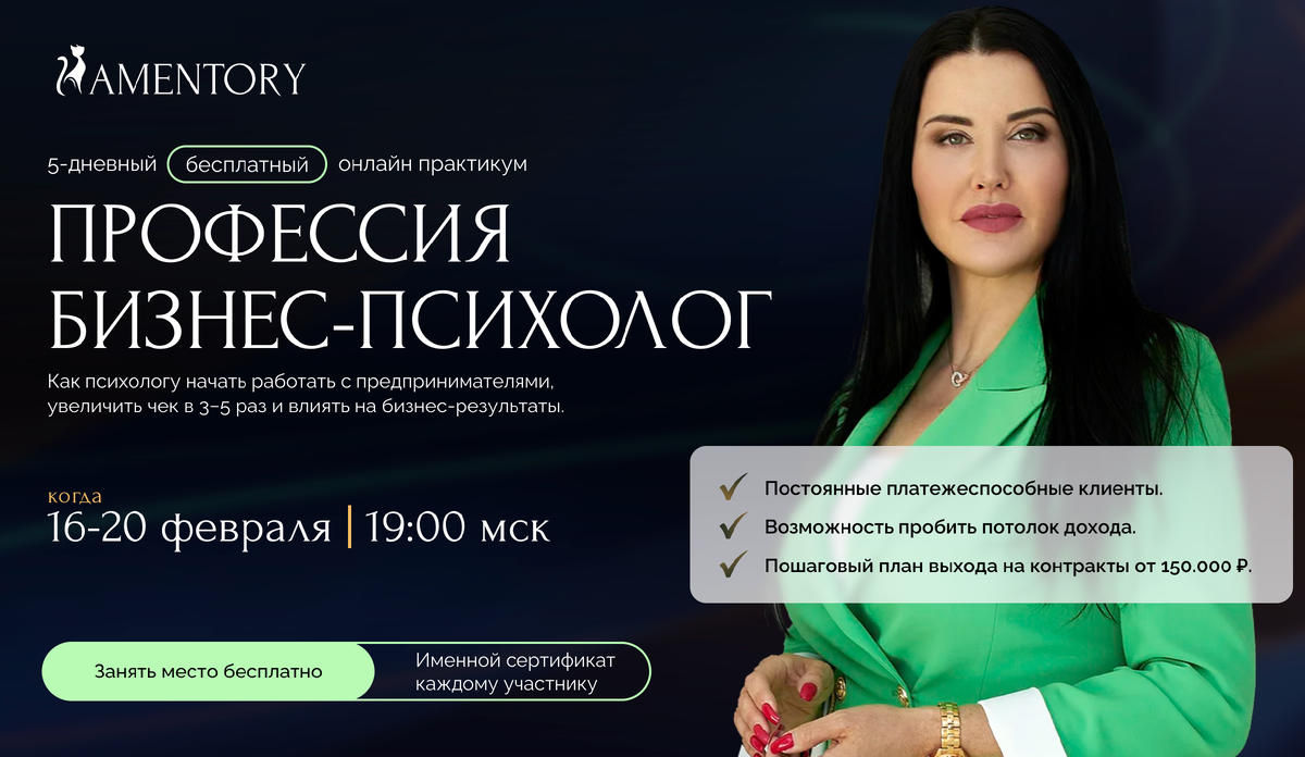 С 16 по 20 февраля пройдёт бесплатный онлайн-практикум «Профессия бизнес-психолог». Даты утверждены! И я, Жанна Абрамова, с удовольствием приглашаю вас принять участие. Сразу скажу несколько важных моментов. Если вы были на прошлом трёхдневном практикуме, приходите обязательно и сейчас. Программа обновлена, расширена, добавлены новые разборы, новые акценты и более глубокая работа с методологией. - Если вы пропустили прошлый практикум - это ваш второй шанс. - Если вы совсем новенькие и только присматриваетесь, вам тем более стоит быть. Этот практикум я делаю прежде всего для специалистов помогающих профессий: психологов, коучей, расстановщиков, терапевтов, консультантов, тех, кто уже работает с людьми и хочет выйти за пределы разговоров «про состояния» и начать работать с результатом, динамикой и деньгами. На практикуме мы будем разбирать: - кто такой бизнес-психолог (трекер) и чем он отличается от психолога и коуча; - с какими запросами реально приходят предприниматели и бизнес; - п