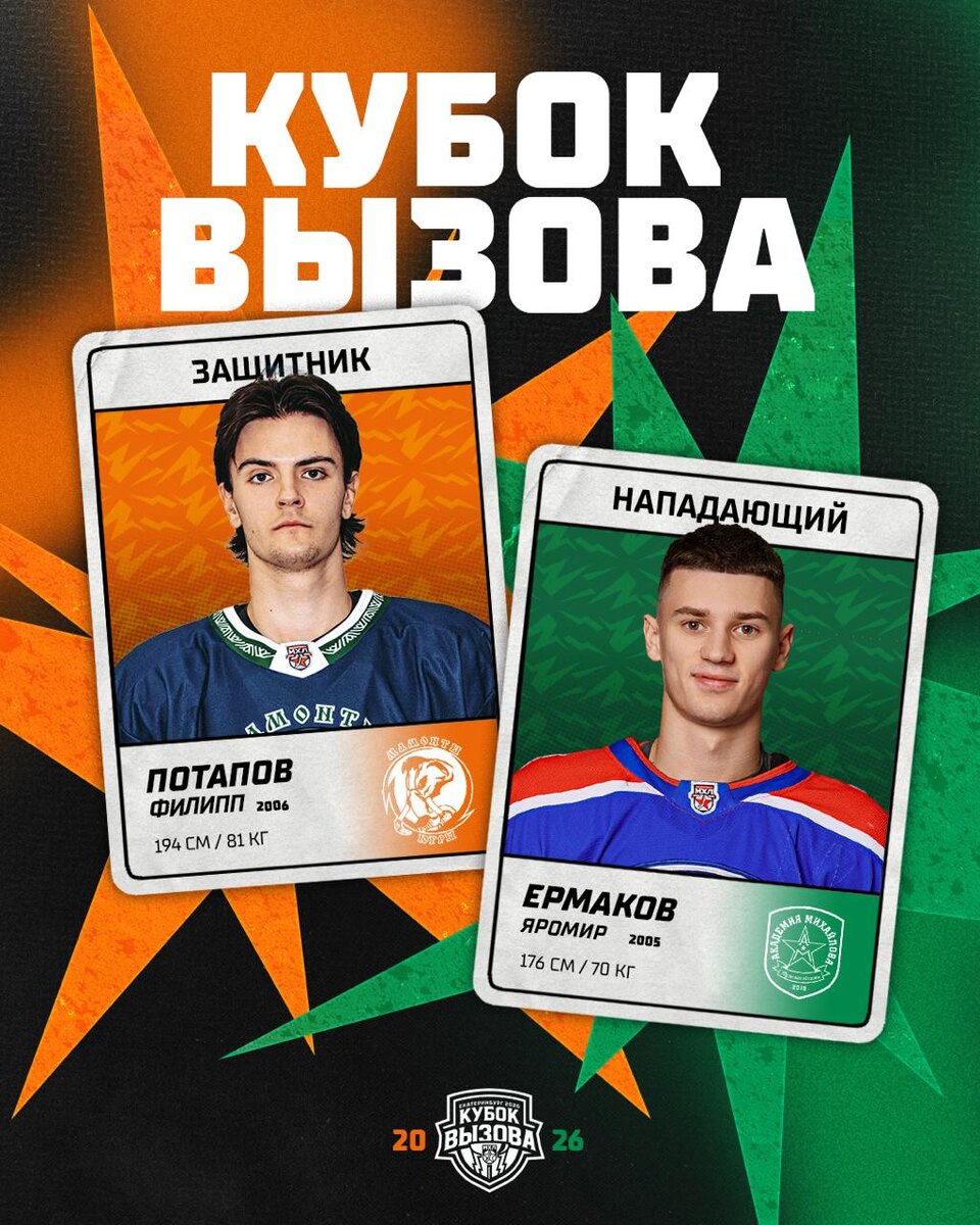! 6️⃣ февраля Екатеринбург примет лучших игроков молодежного хоккея. Обещаем: будет ярко, дерзко и точно незабываемо! Филипп Потапов🦣 — первый снайпер-защитник команды и четвертый – в лиге. Игрок обороны проводит третий сезон в составе «Мамонтов Югры»: 1️⃣2️⃣0️⃣ матчей, «+33». В текущем регулярном чемпионате Потапов уже набрал 21 (10+11) результативный балл при показателе полезности «+14». Высокий (194) защитник проводит 19 с половиной минут на площадке и не стесняется играть в тело – 4️⃣9️⃣ силовых в этом сезоне и 1️⃣0️⃣5️⃣ всего в карьере. Он также готов принимать броски на себя: 1️⃣2️⃣3️⃣ блокировки к настоящему моменту. Яромир Ермаков⚔️ — первый снайпер-бомбардир тульской молодежки во второй раз отправится на Кубок Вызова. В текущем сезоне форвард набрал 3️⃣5️⃣ (14+21) очков за 36 матчей, а также успевает играть в команде ВХЛ. Ермаков проводит больше всех времени на площадке – без малого 2️⃣0️⃣ минут. Хороший показатель полезности («+15»), а также почти 2️⃣0️⃣0️⃣ матчах МХЛ за