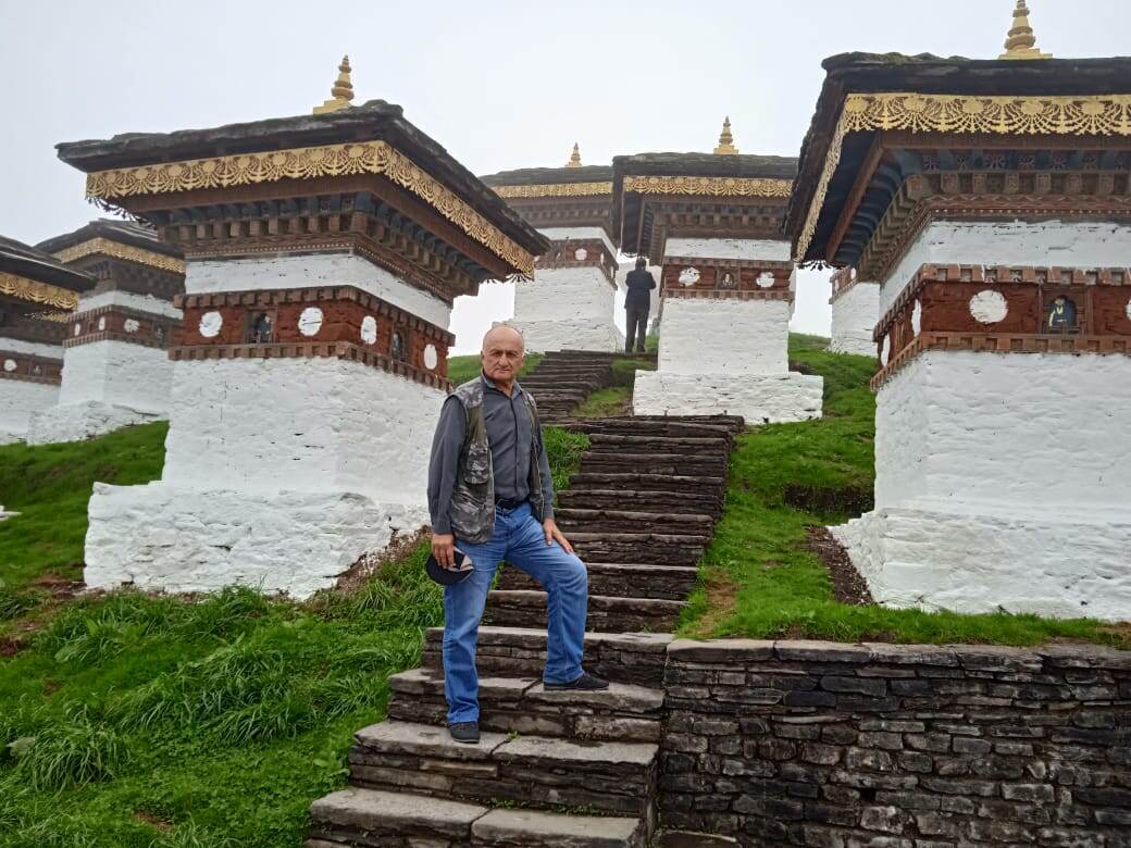 Утром нас ждал переезд в городок Пунакха через перевал Дочу-Ла 3080 м. На нем установлено 108 чортенов (прямоугольные строения с усеченными на них пирамидами, резными крышами увенчаны золотыми шпилями). Ознаменуют собой освобождение страны от Ассамского вторжения. Полюбовались пейзажами, едва сделали фото, как все заволокло дымом.
