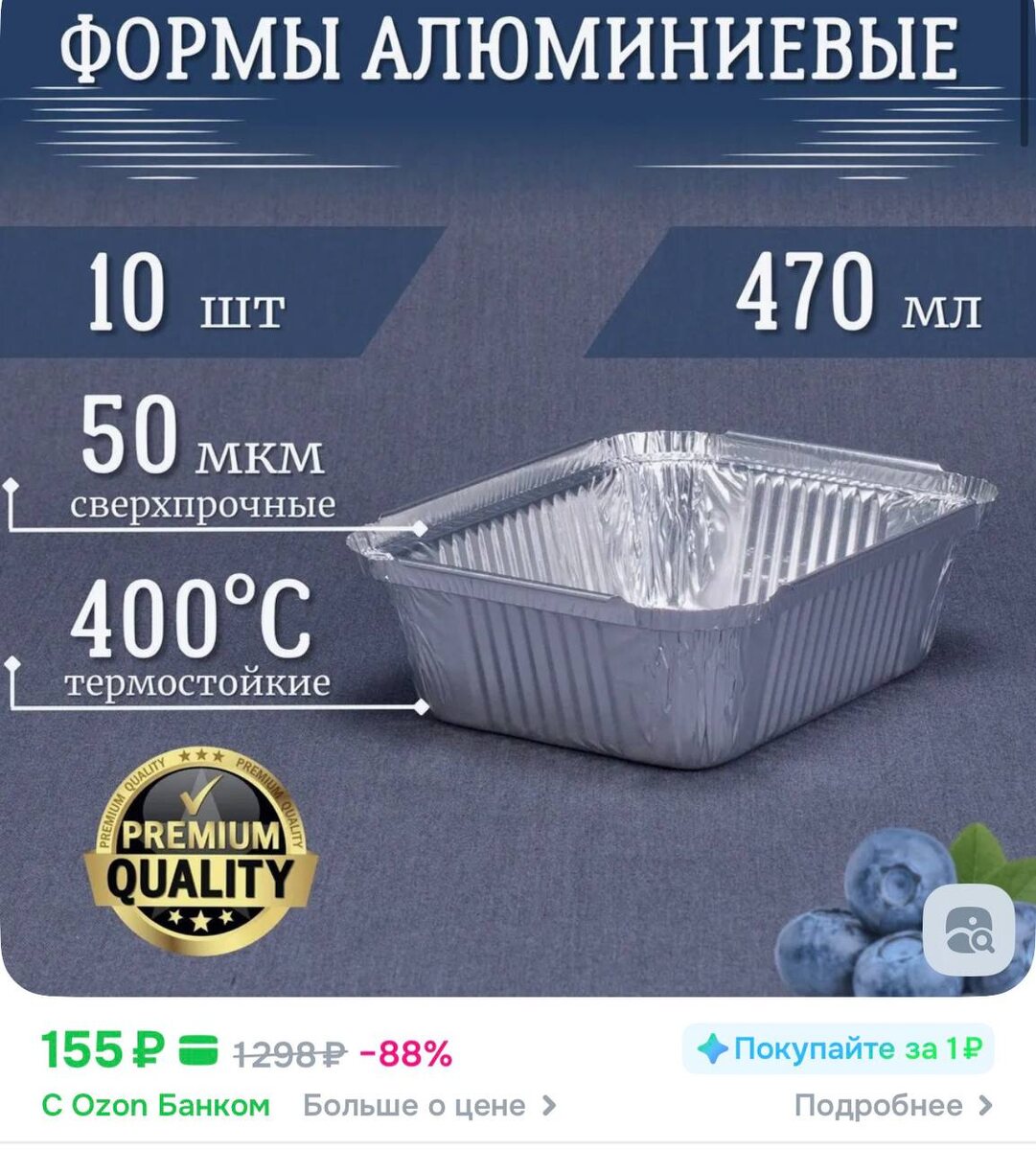😀😀😀Формы из фольги РусАл 470мл 10шт 15x12x4см. Высокопрочные, термостойкие алюминиевые формы для запекания.