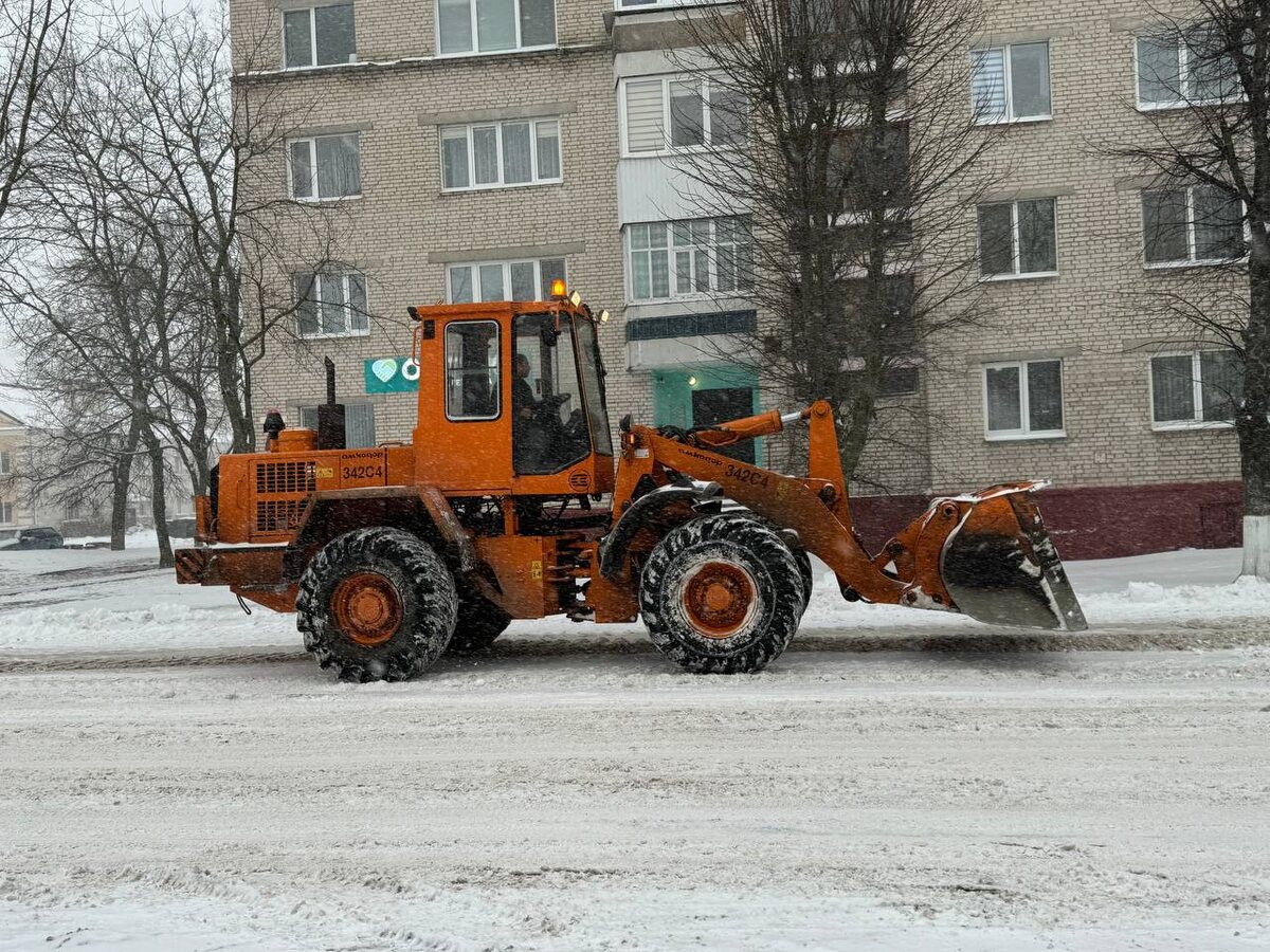 Работники Лунинецкого ЖКХ продолжают расчищать улично-дорожную сеть от снега. В процессе задействована специализированная техника.