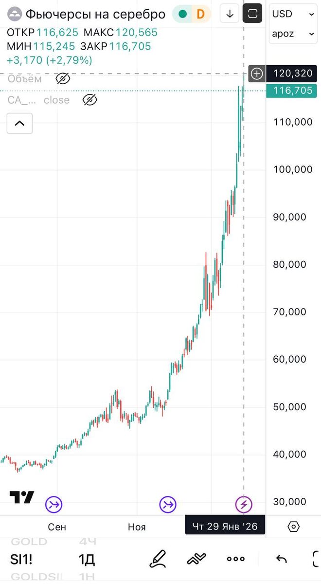 🪙Цена серебра 120$ за унцию на бирже COMEX!
