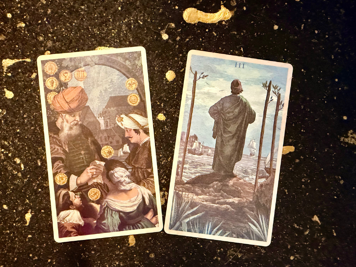 Выпавшие карты — 10 пентаклей и 3 жезлов — несут очень позитивный и вдохновляющий посыл. 10 пентаклей символизируют стабильность, материальное и духовное благополучие, а также поддержку со стороны семьи, рода или сплочённой команды. Это карта долгосрочных достижений, традиций и прочного фундамента, на который можно смело опереться. Она говорит о том, что