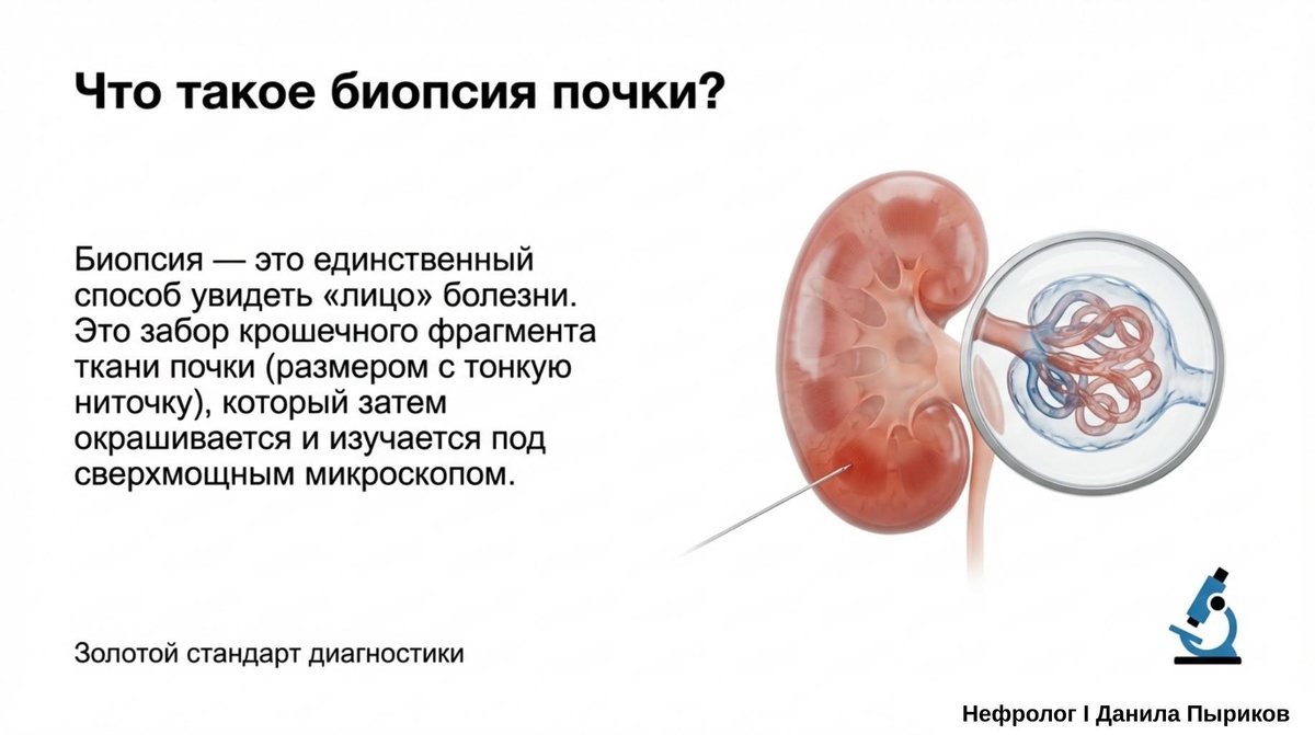 Главный смысл биопсии почки - поставить точный диагноз.