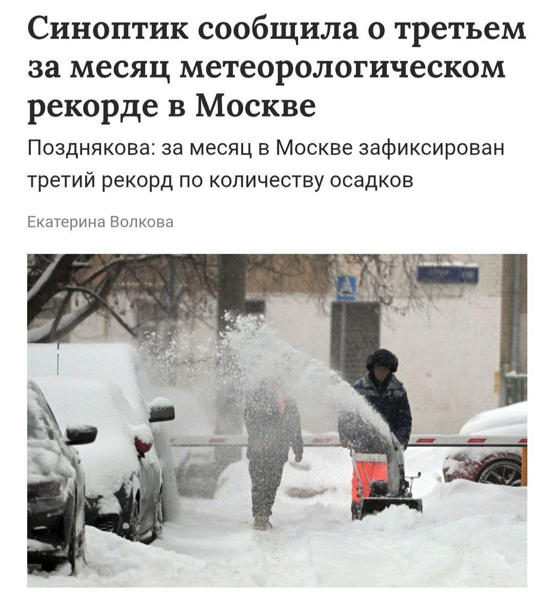 Снегопады в Москве стали рекордными за последние 50 лет. За ночь в столице выпало 14 мм осадков, а всего за сутки — 27 мм, сообщили синоптики.